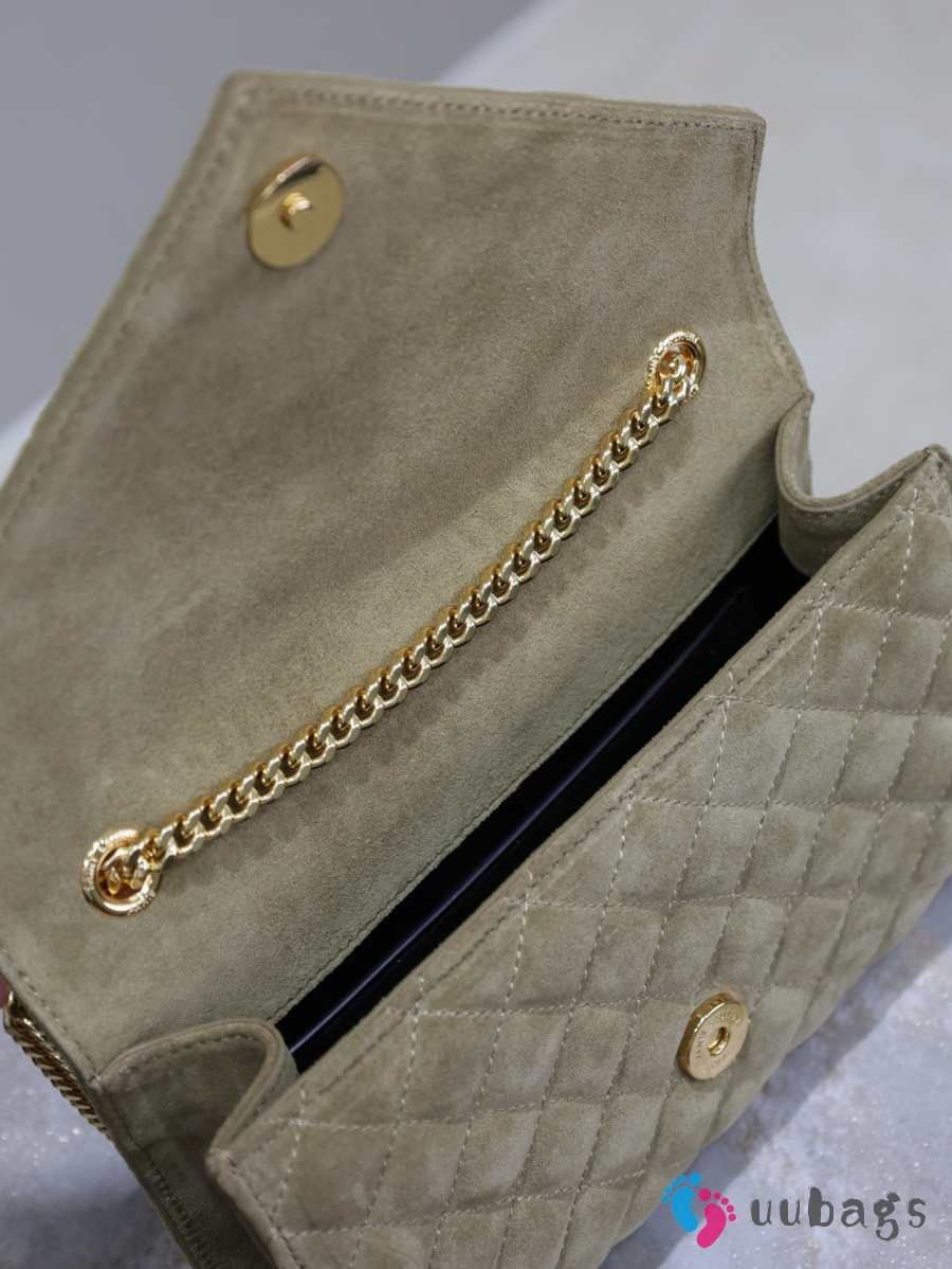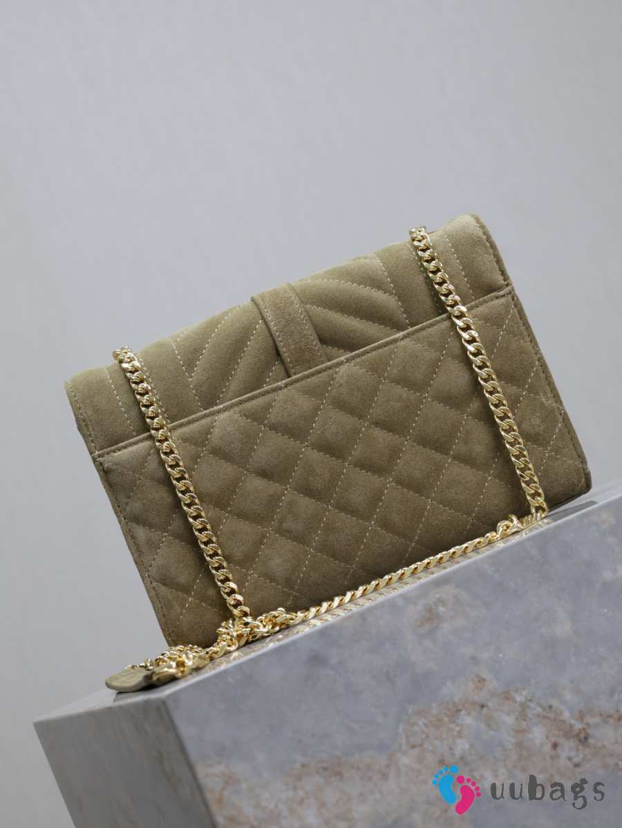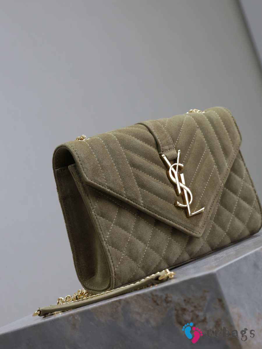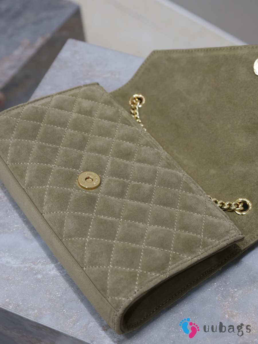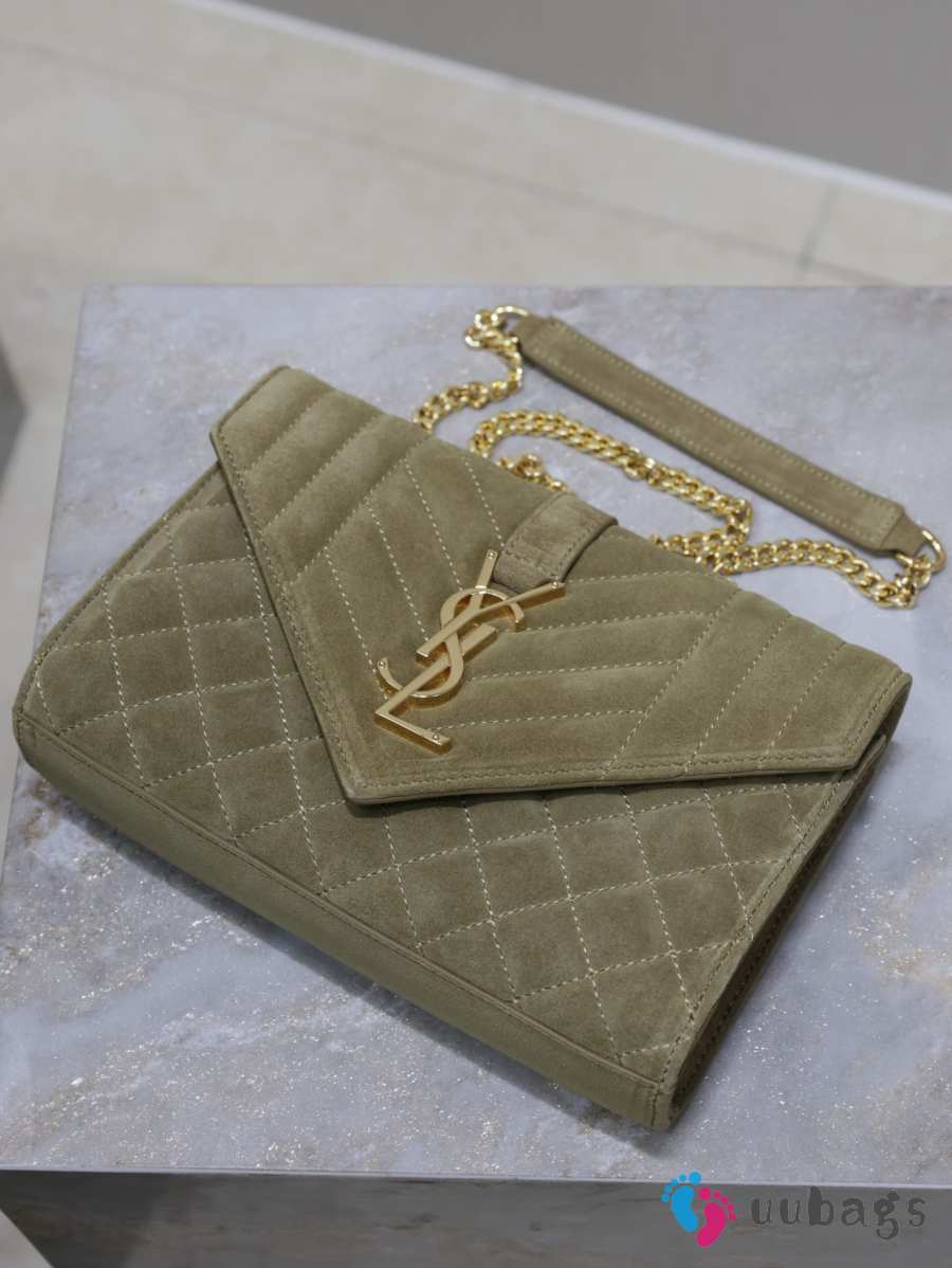 Uubags YSL Envelope suede leather bag in green gold buckle 24x17.5x6cm