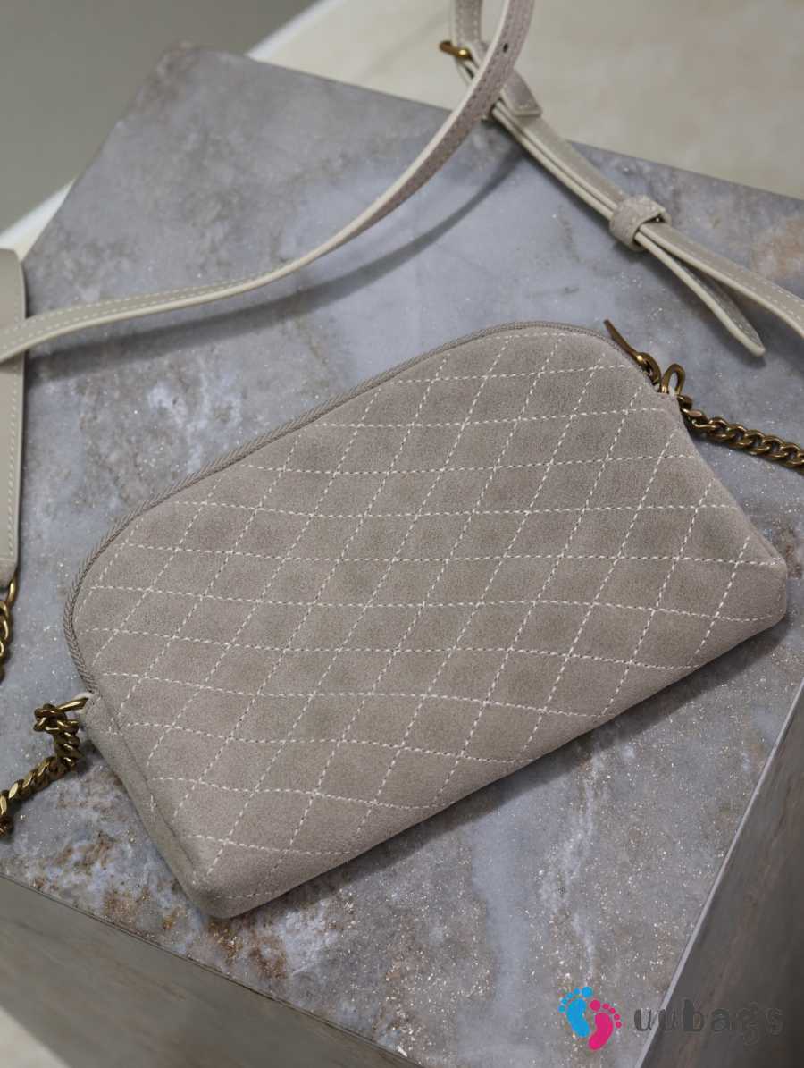 Uubags YSL Gaby zipped pouch in light grey suede leather 19x12x3cm