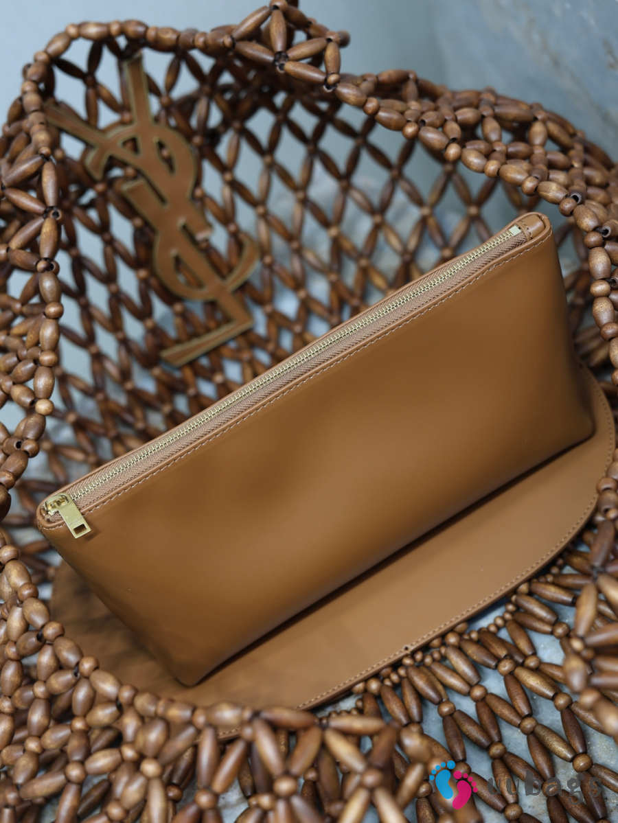 YSL Envelope suede leather dark brown gold buckle 24x17.5x6cm
