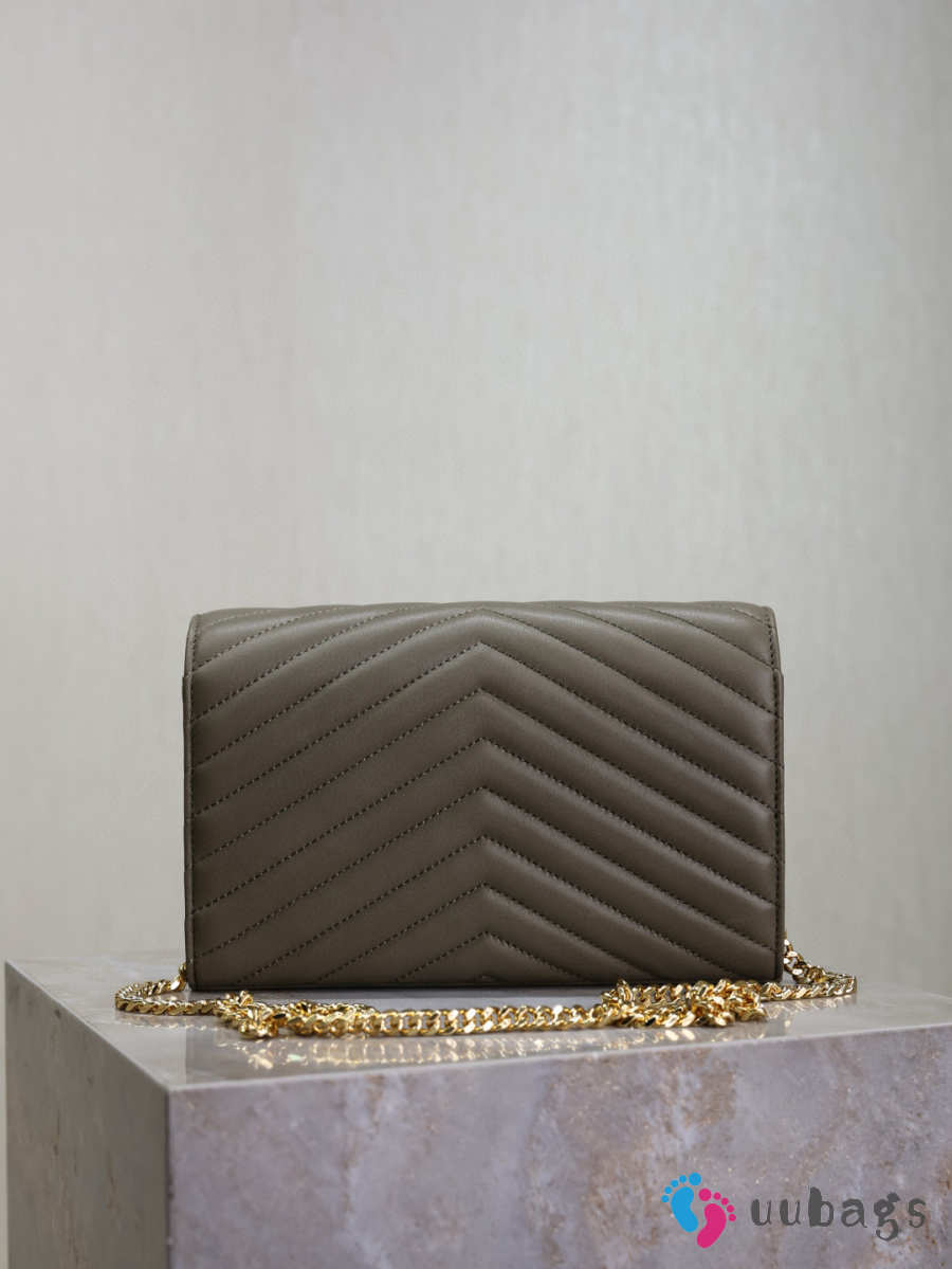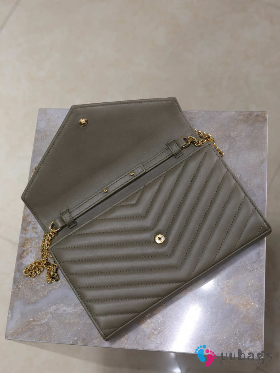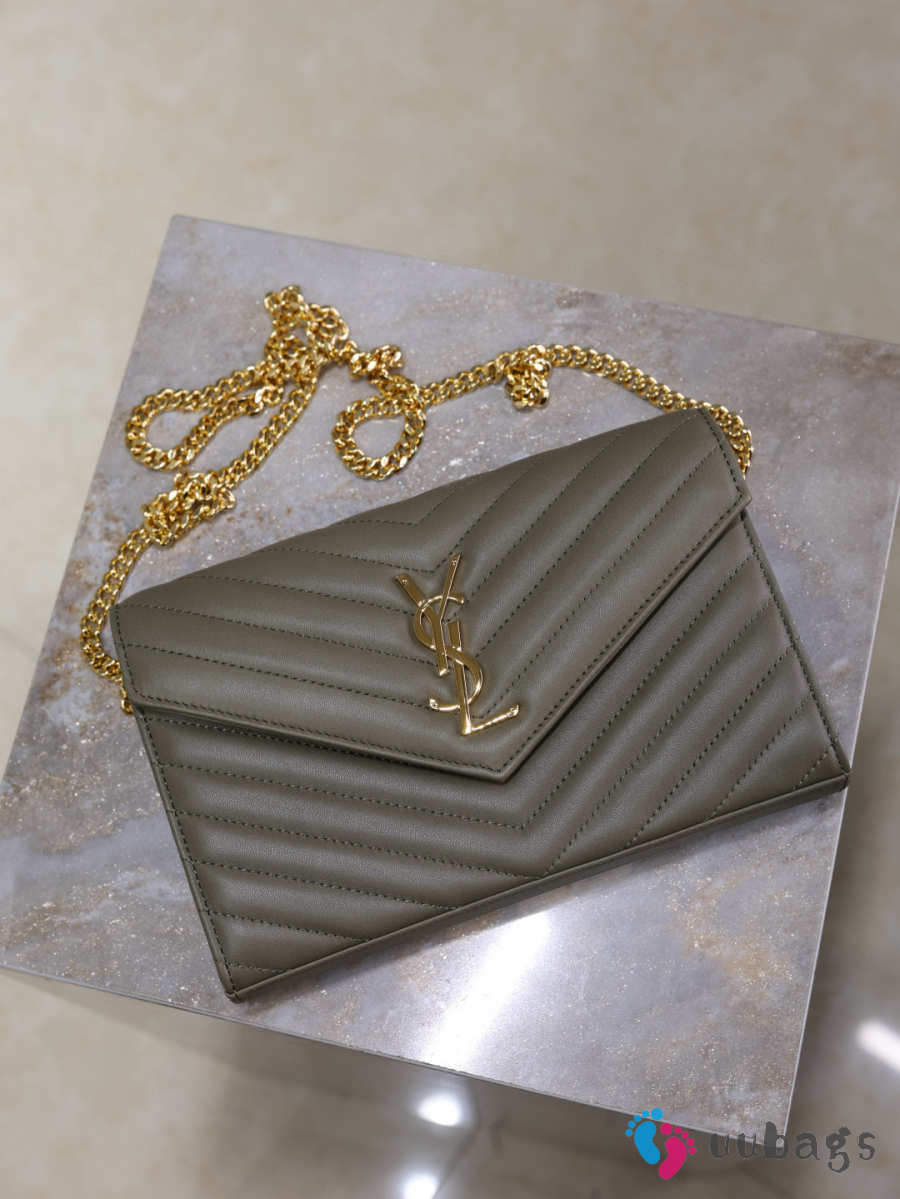 Uubags YSL medium Cassandre Envelope chain wallet in olive wood lambskin 22.5x14x4cm