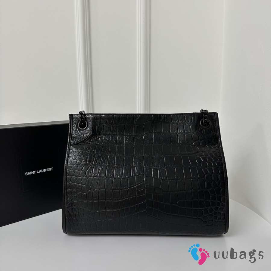Uubags YSL Niki Shopping Tote in Black Crocodile-Embossed Leather 33x27x11.5cm