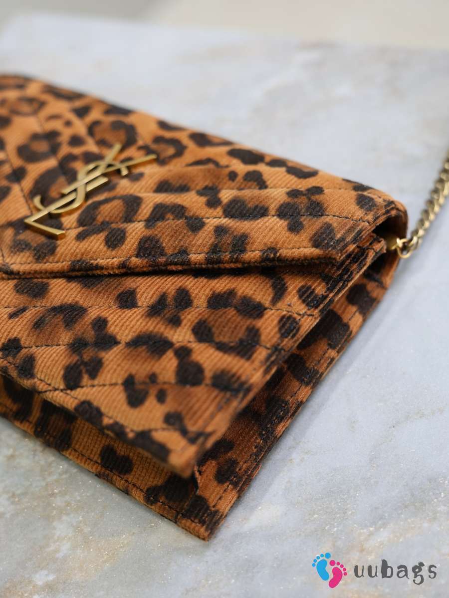 Uubags YSL small Cassandre Envelope chain wallet in a leopard print 19x11.5x4cm