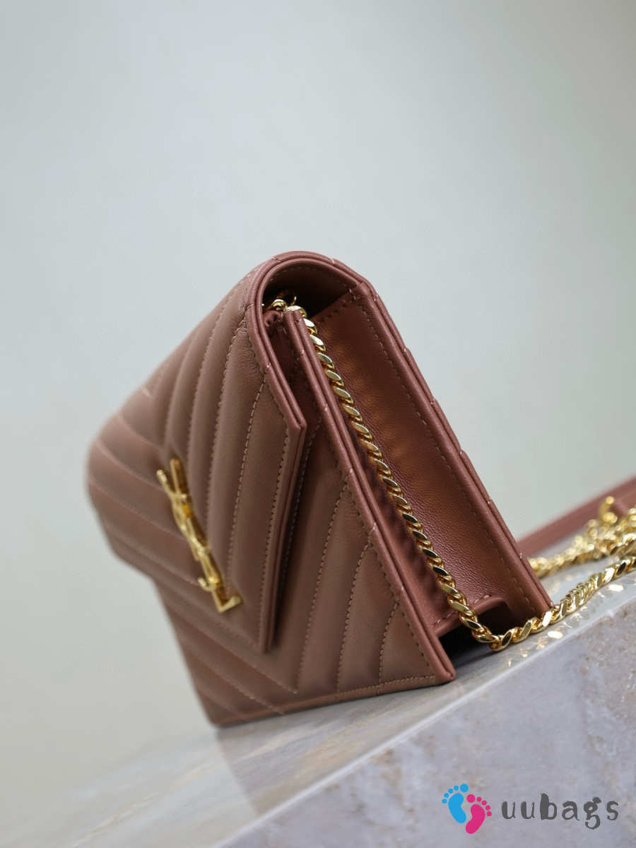 Uubags YSL small Cassandre Envelope chain wallet in barely pink lambskin 19x12.5x3.5cm
