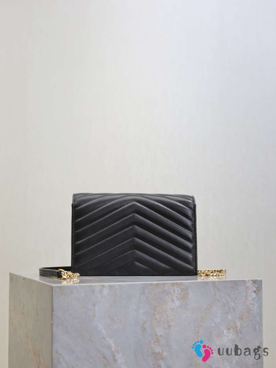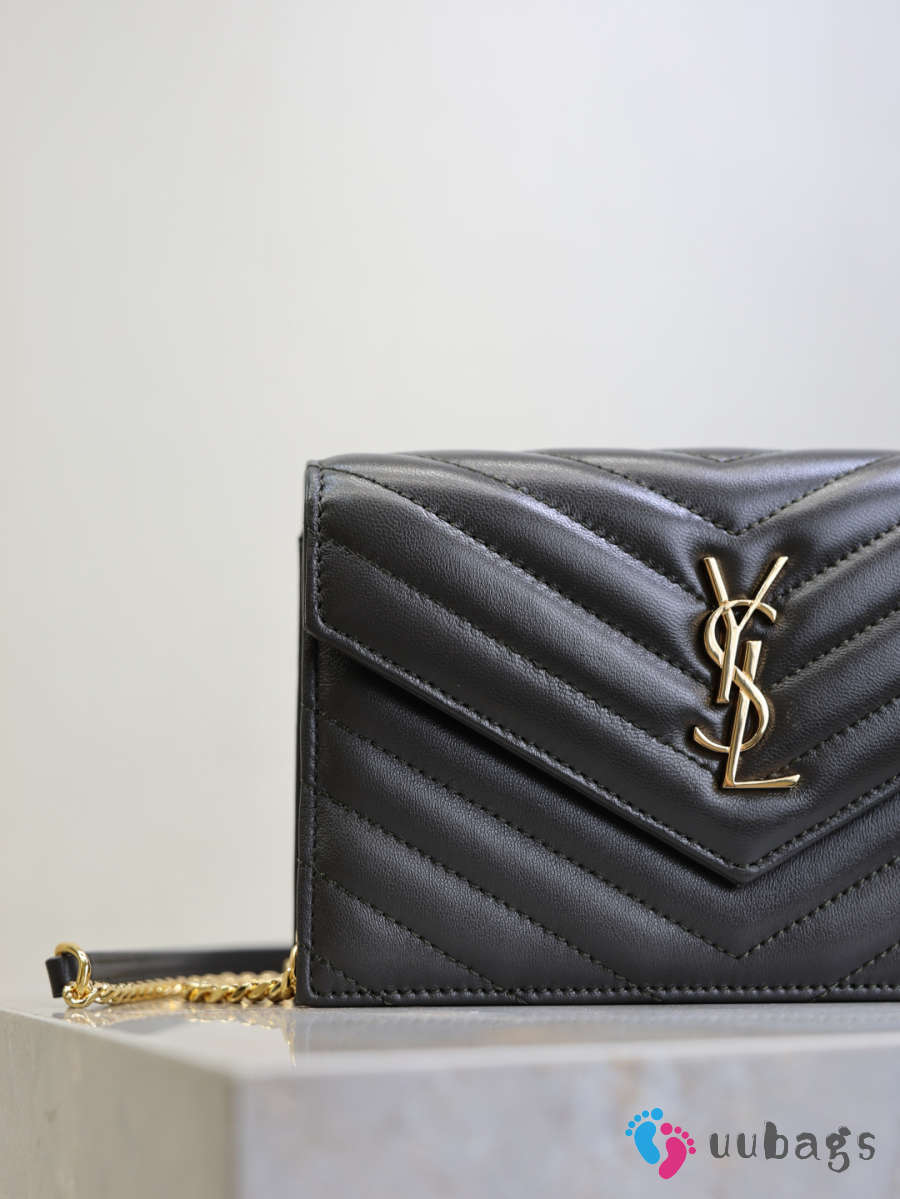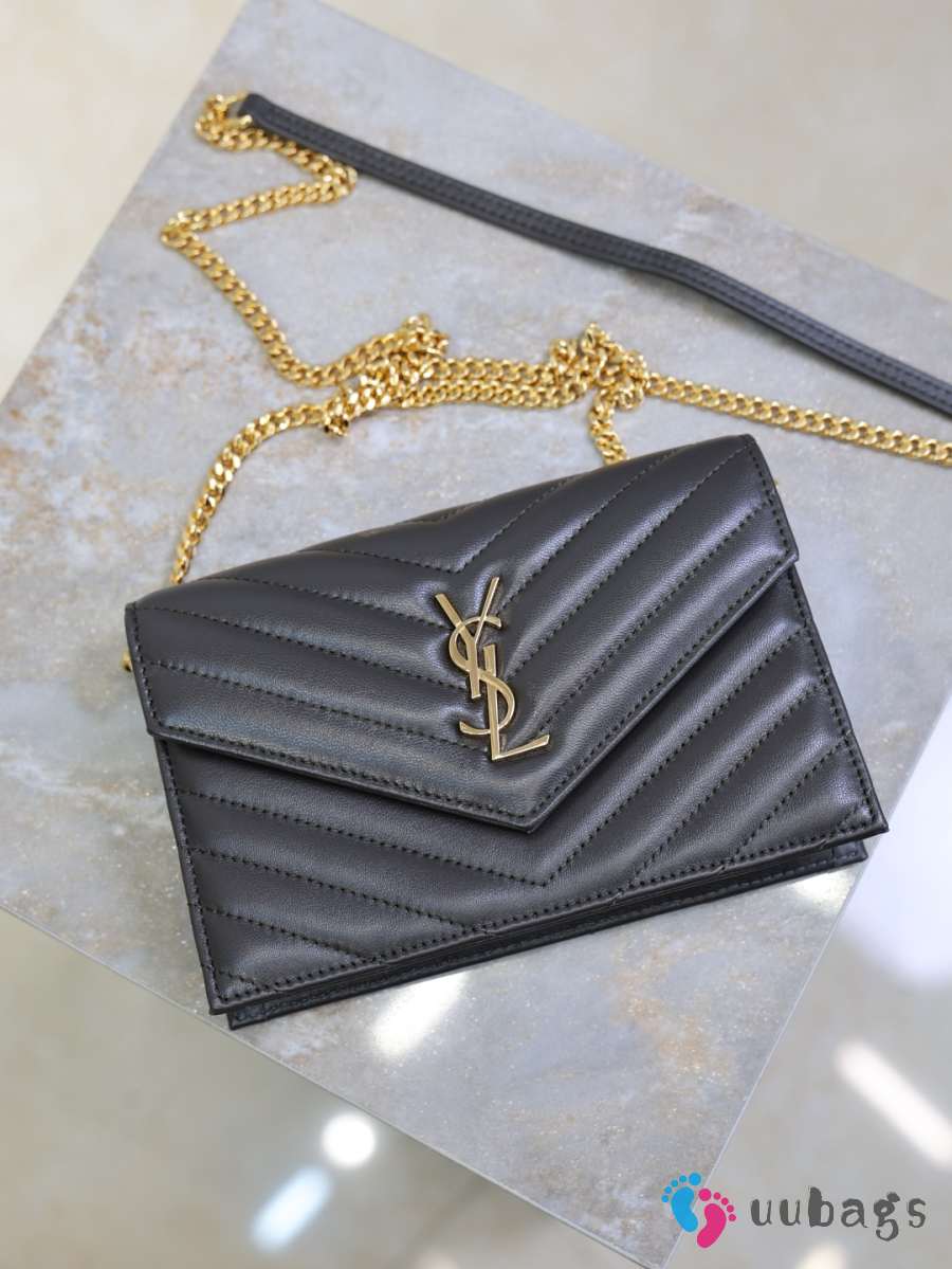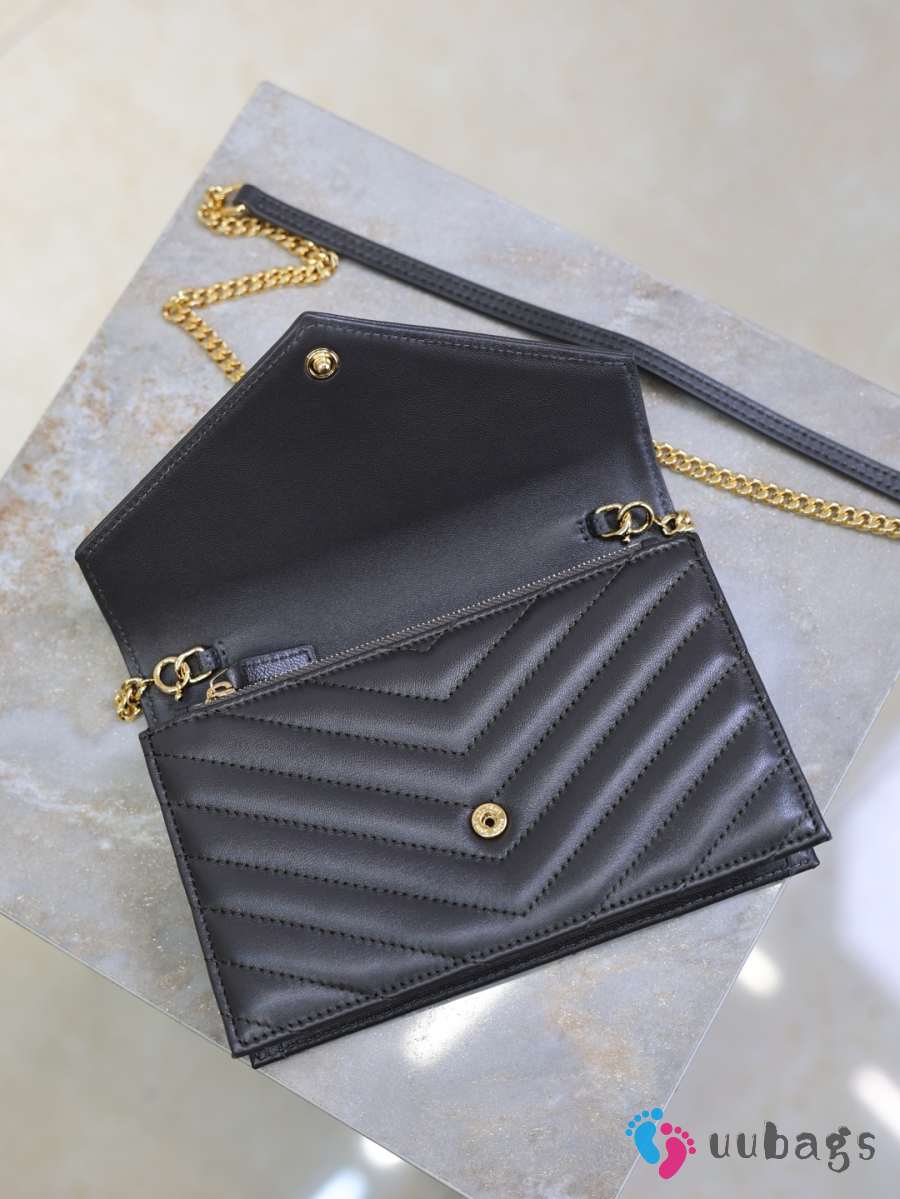 Uubags YSL small Cassandre Envelope chain wallet in black lambskin 19x12.5x3.5cm