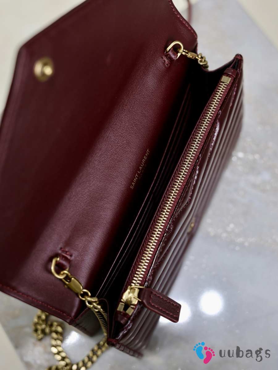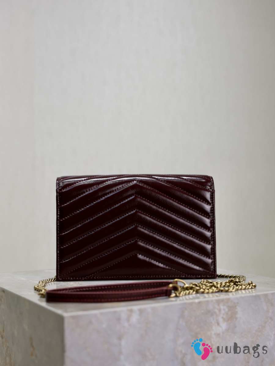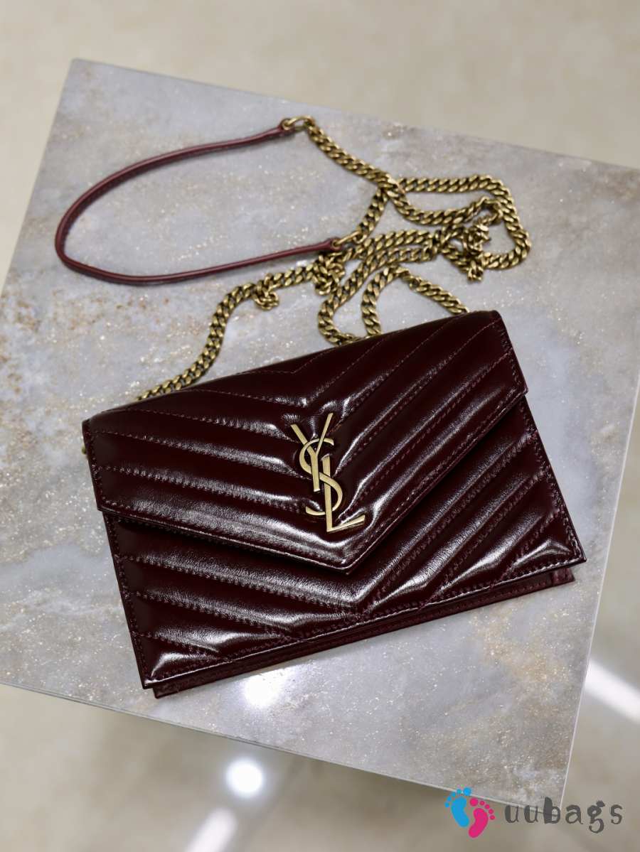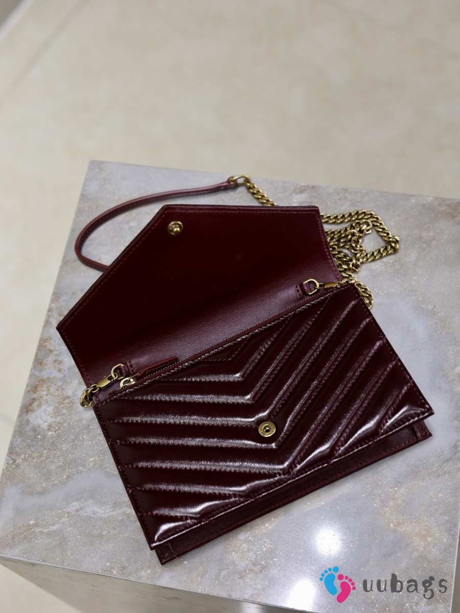 Uubags YSL small Cassandre Envelope chain wallet in burgundy lambskin 19x12.5x3.5cm