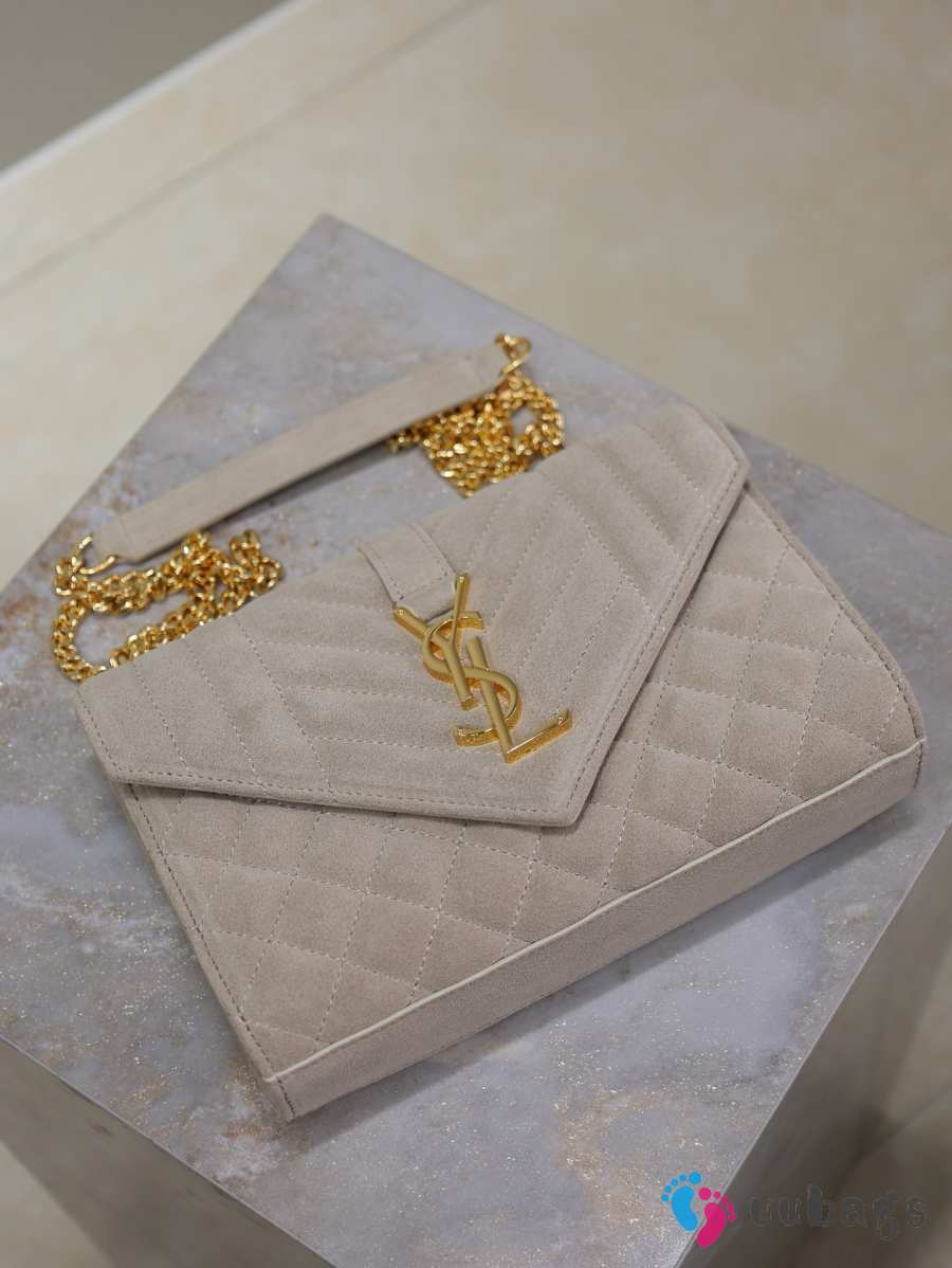 Uubags YSL Small Envelope suede leather bag in grey gold buckle 21x13x6cm