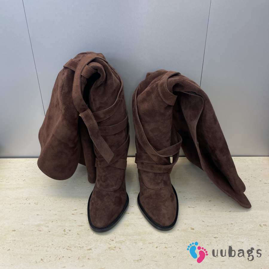 Uubags YSL Suede knee-high boots in dark brown 9.5cm