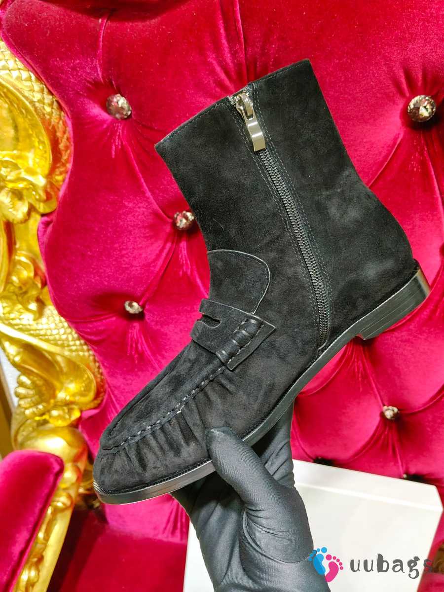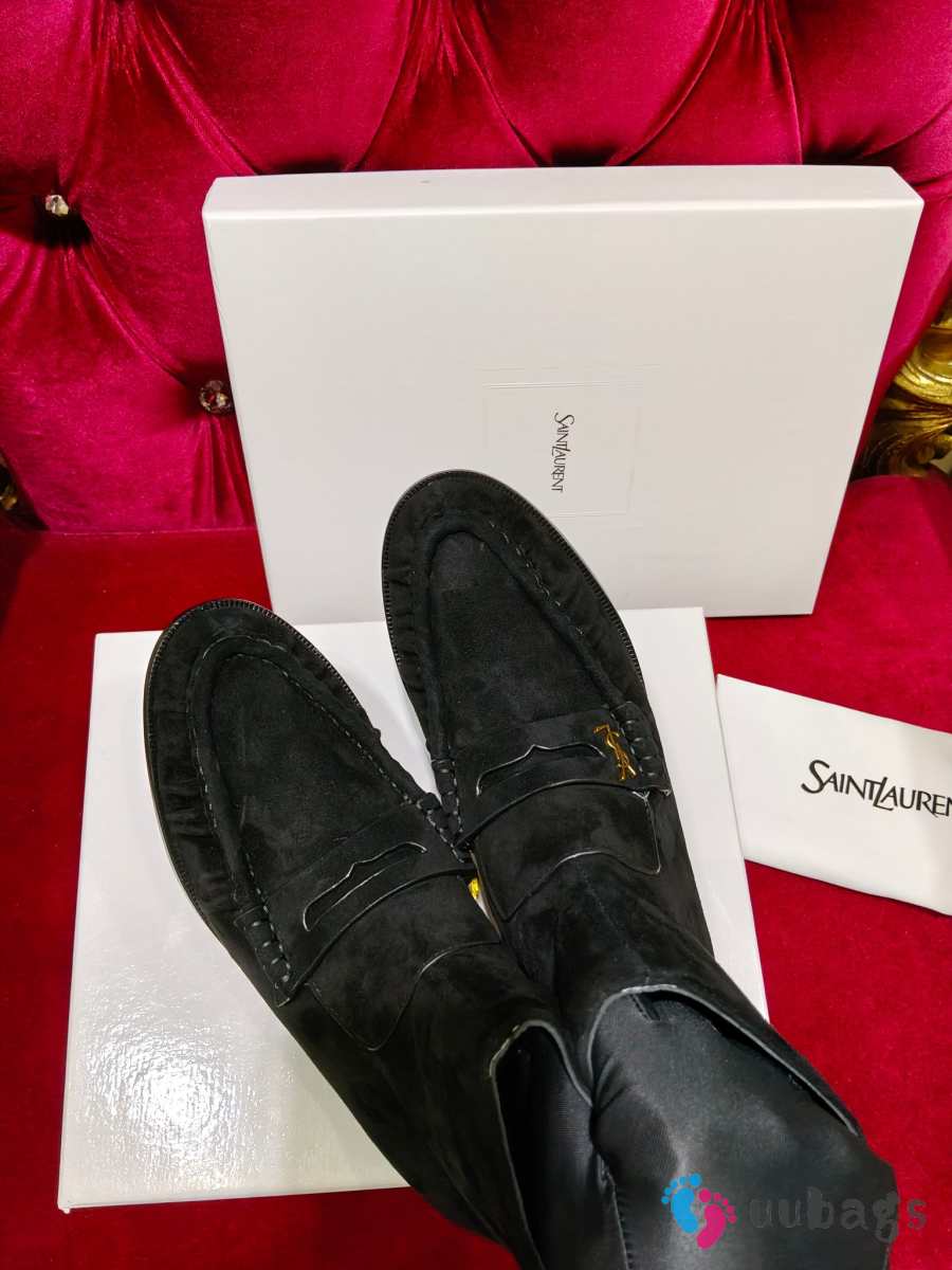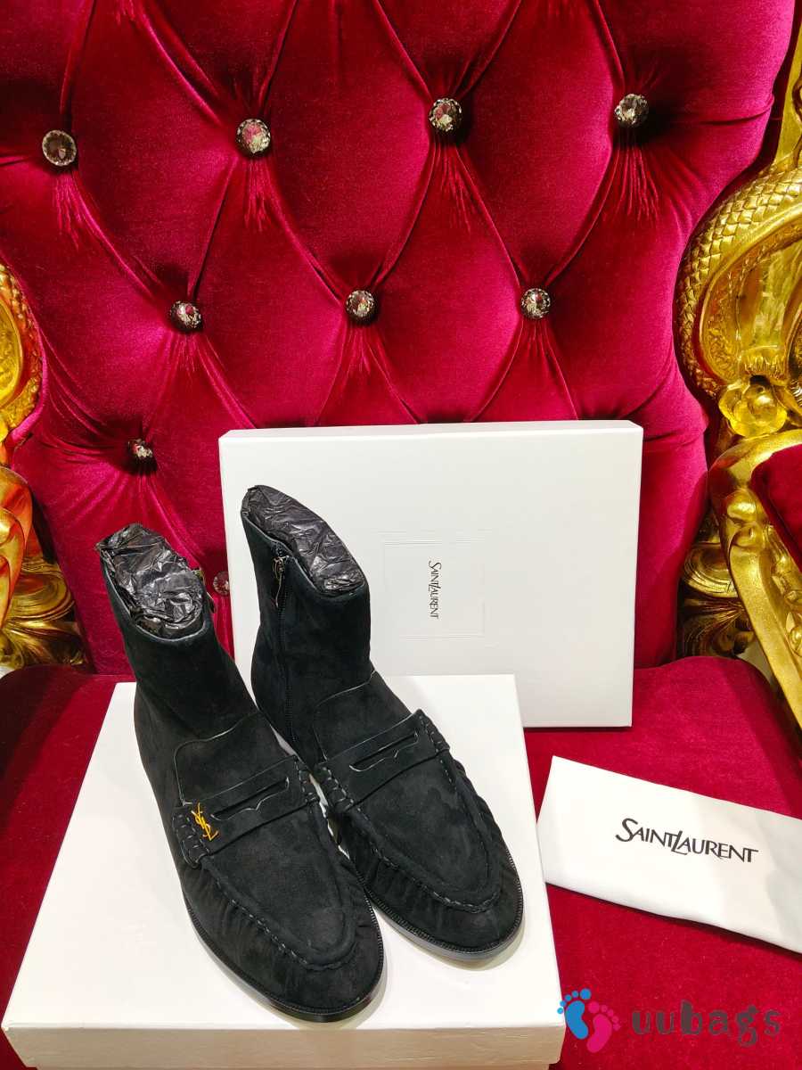 Uubags YSL Suede Penny Loafer Ankle Boots In Black